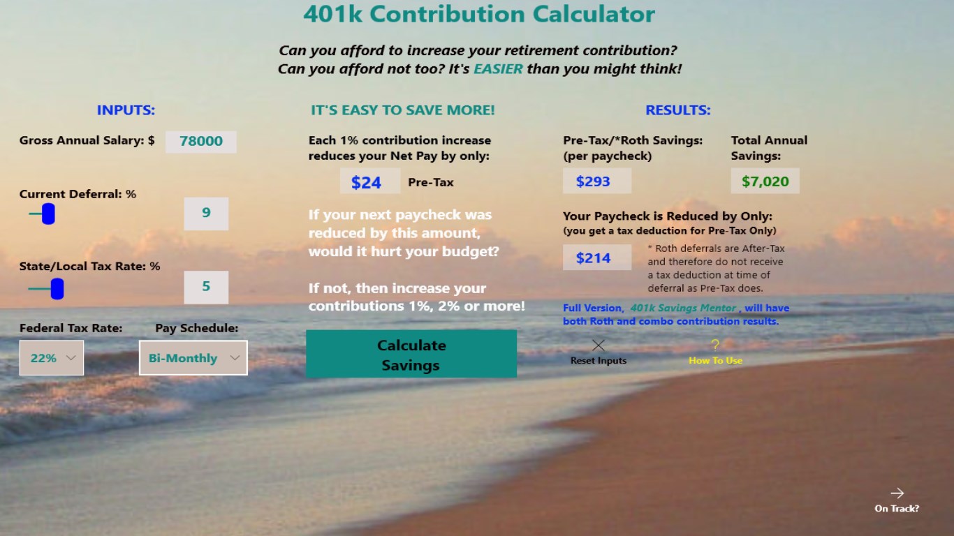 . Use this calculator to see how much more you could accumulate in your employer retirement plan over time by increasing the amount that you contribute from each paycheck. Calculate Your Potential Investment Returns With the Help of AARPs Free Calculator. Initial balance or deposit Annual savings amount Annual increase in contributions 0 to 10 Number.